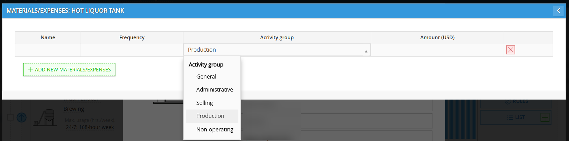 Use this to track variable costs like electricity, water, or gas that are only consumed when the machine is active.