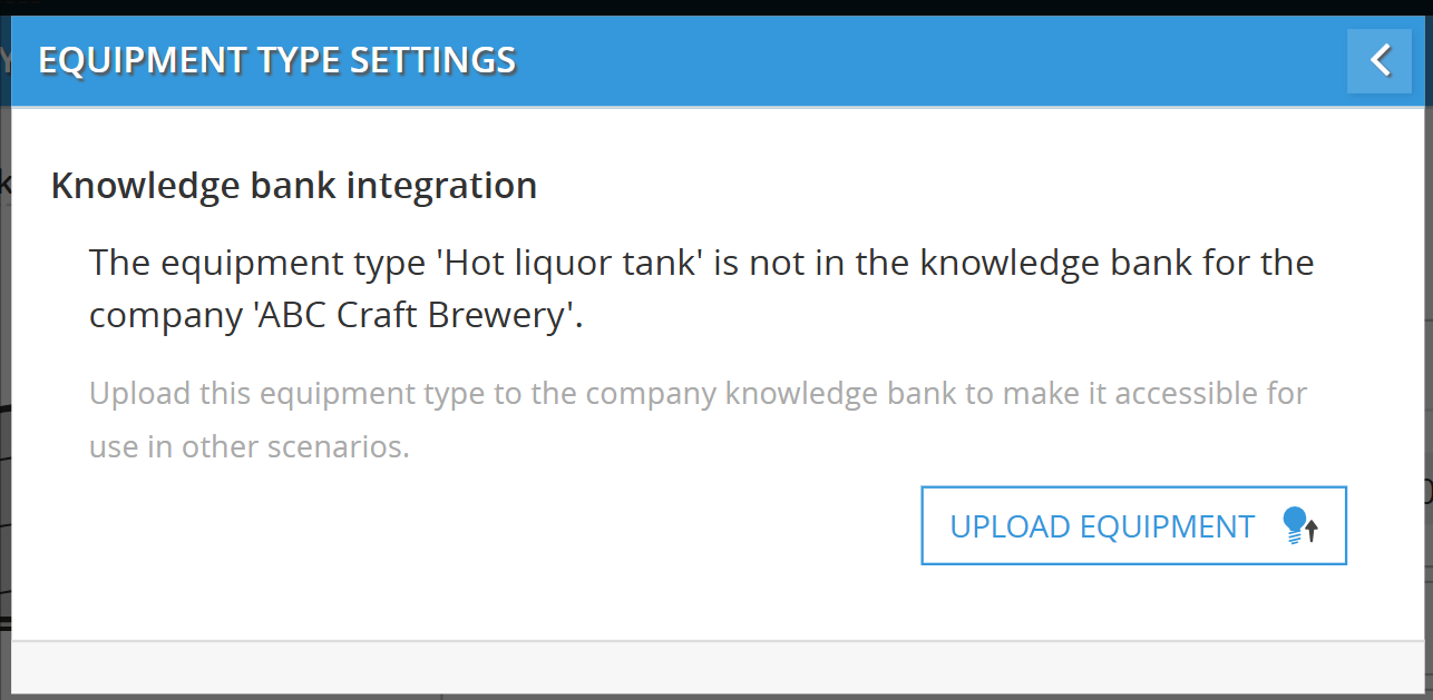 Once you have finished entering your equipment rules, you don't have to keep them trapped in a single scenario. You can upload the equipment type to your Company Knowledge Bank, making it a reusable template for any future models or scenarios you create.