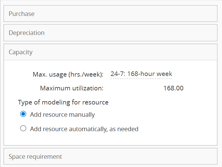 Add resource automatically, as needed: Company will "buy" more equipment for your model the moment demand exceeds your current capacity.
