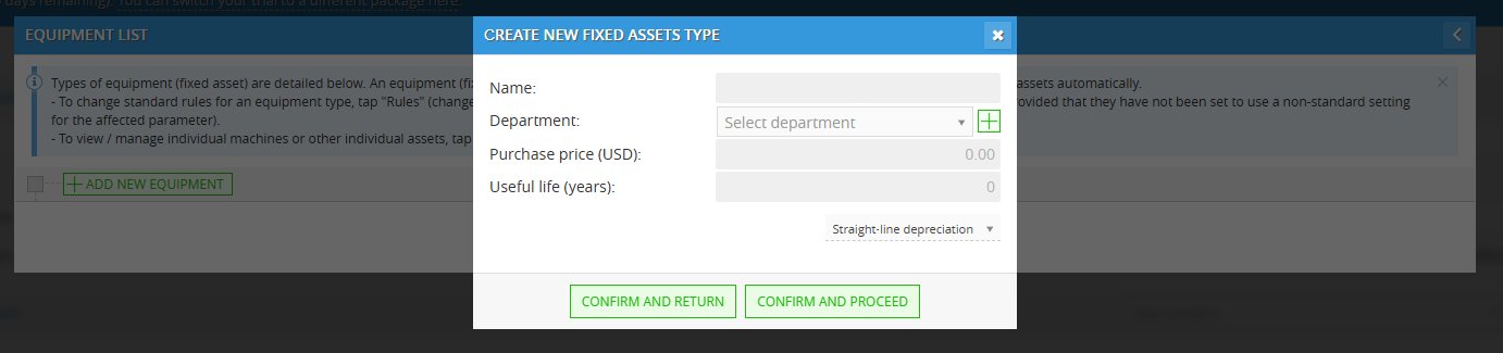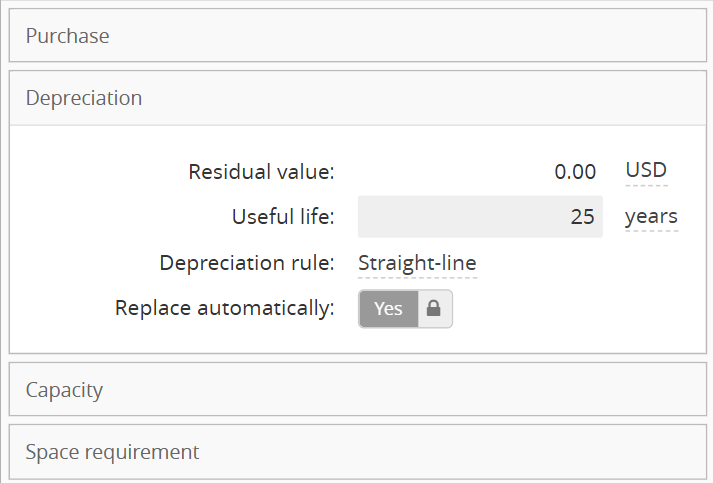 Depreciation: Manage the salvage value and the lifespan of the asset based on the type you selected in the previous step.