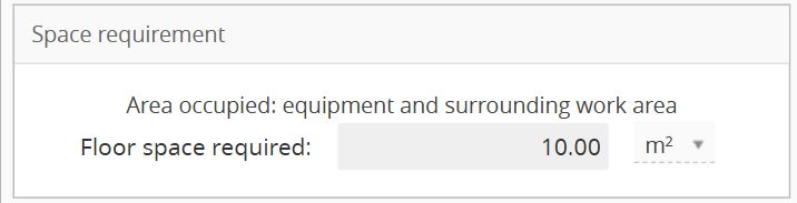 - Floor Space Required: Enter the total area occupied by the machine plus the surrounding work area.