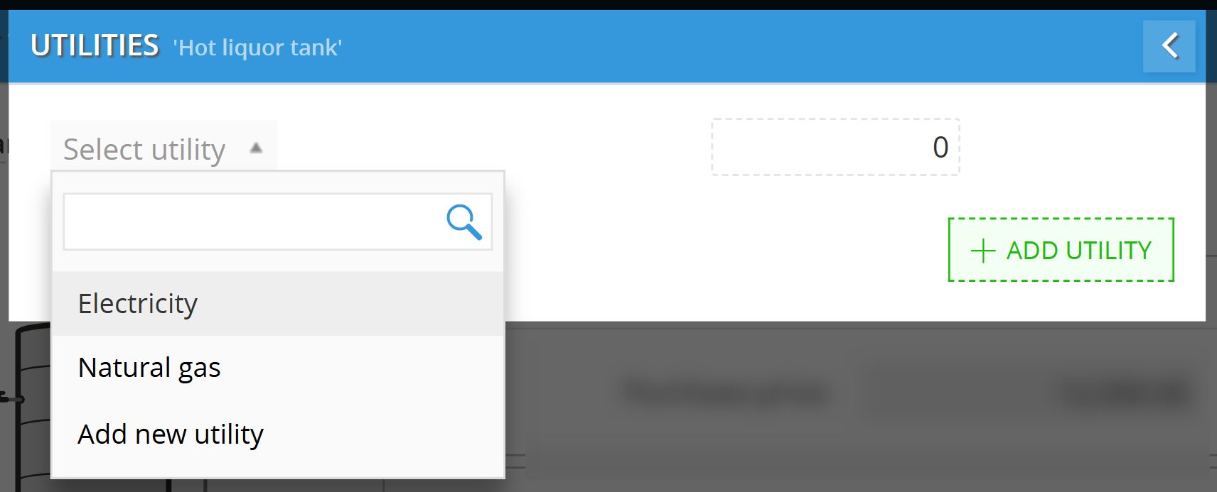 Note: If you haven't set up rates yet, select Add new utility to define the cost per unit of measure (e.g., $/kWh). -