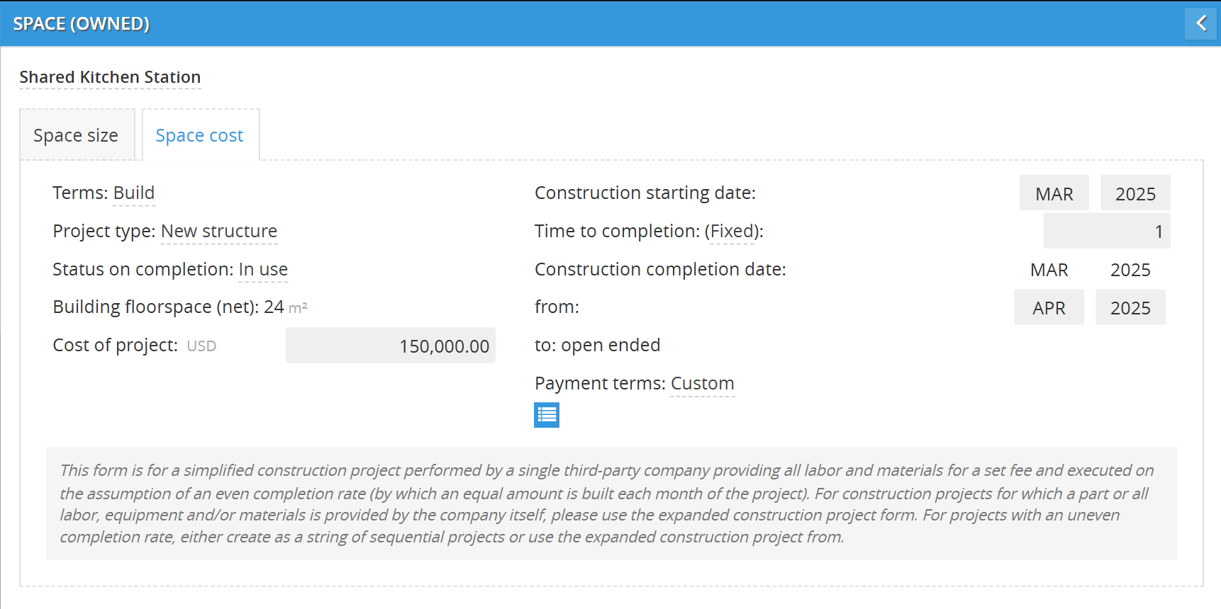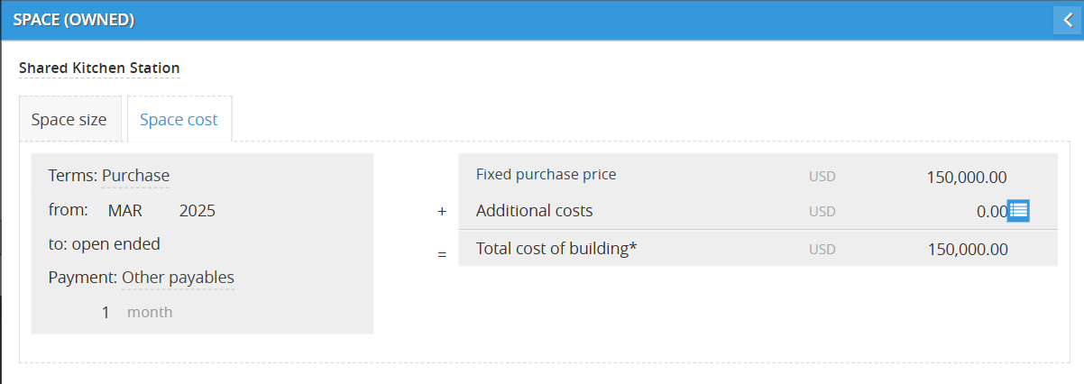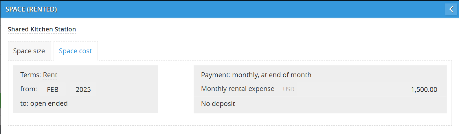 Configuring a Space (like a "Shared Kitchen Station") involves defining its physical limits and its financial lifecycle.