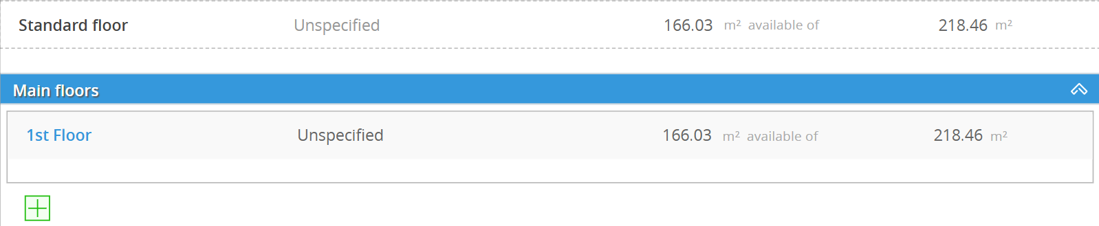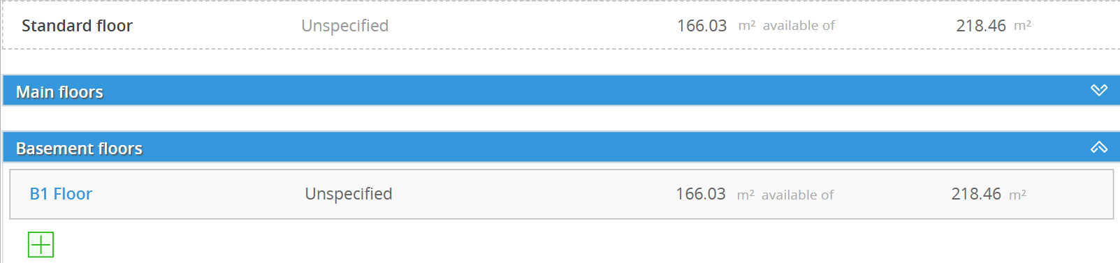 Adding Levels: You can expand your facility vertically by clicking the green [+] button under the Main floors header. Each additional floor is created with the same dimensions as your primary footprint.