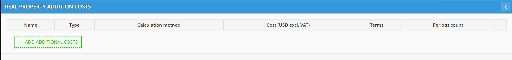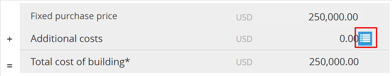 Additional costs: Click the List Button to add associated fees like legal costs, inspections, or transfer taxes.