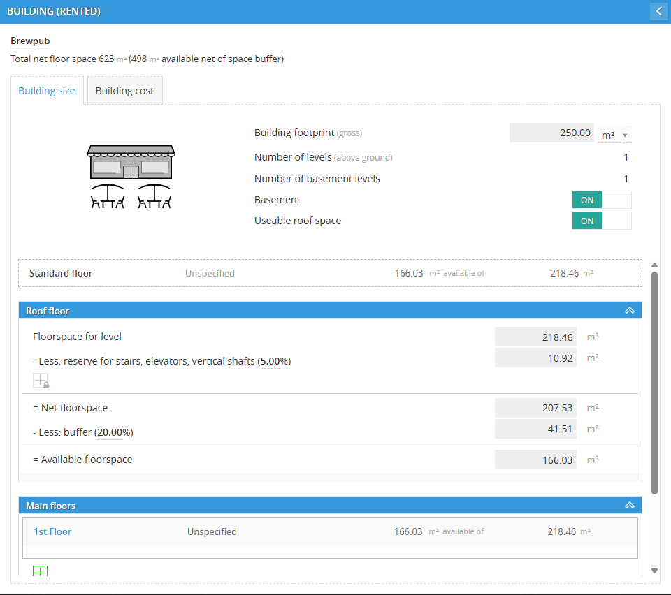When you click RULES on a building, the Building size tab is your architectural blueprint.