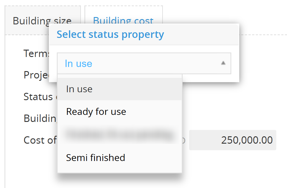 Timeline: Set the Start use date and, if it's a purchased building, its Useful life (years) for depreciation purposes.