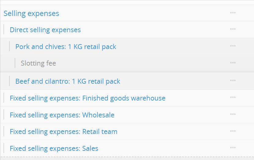 Breakdowns: Some rows have blue clickable text. Click to explore more details—like specific production steps, resource usage, or employee allocations.