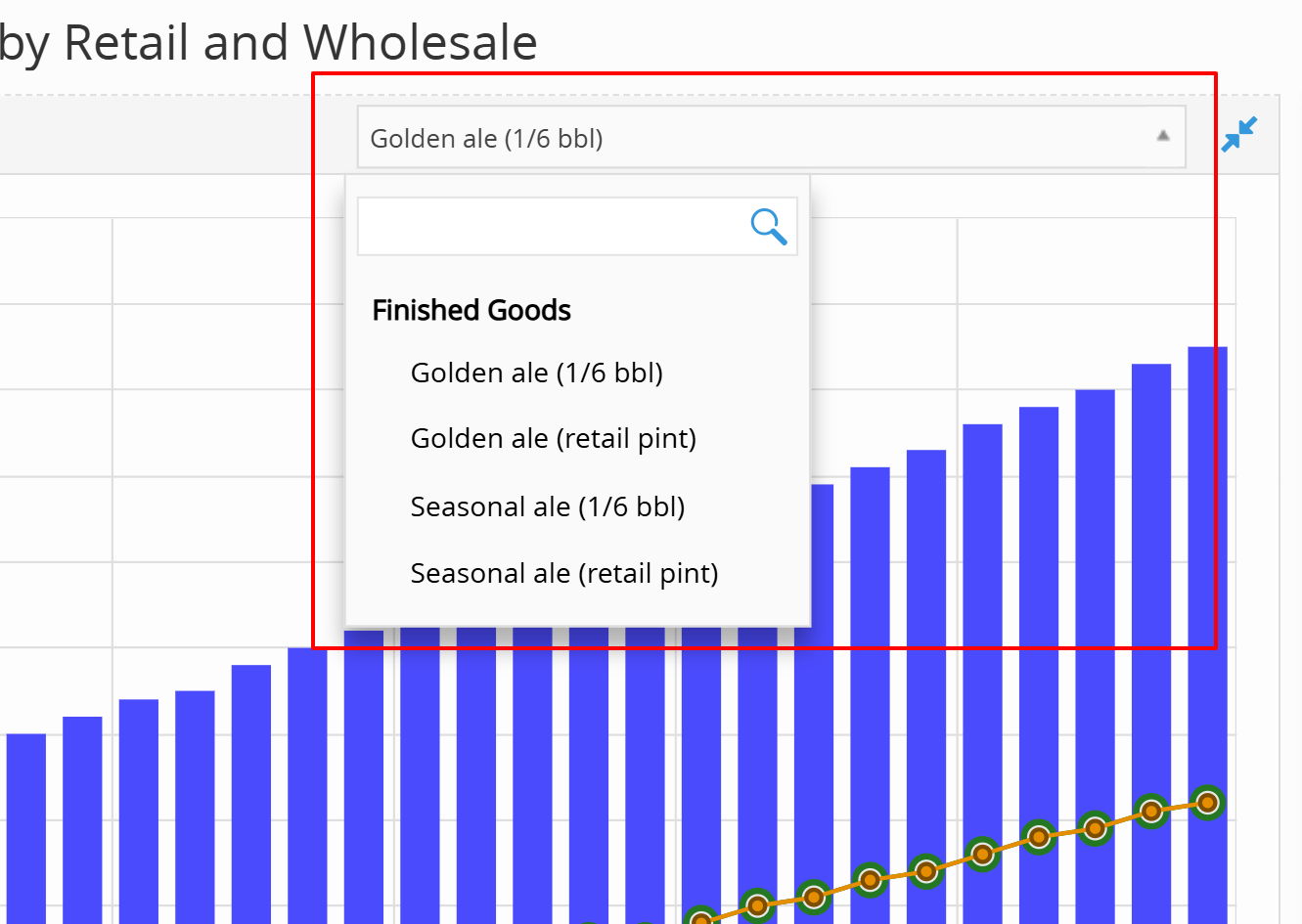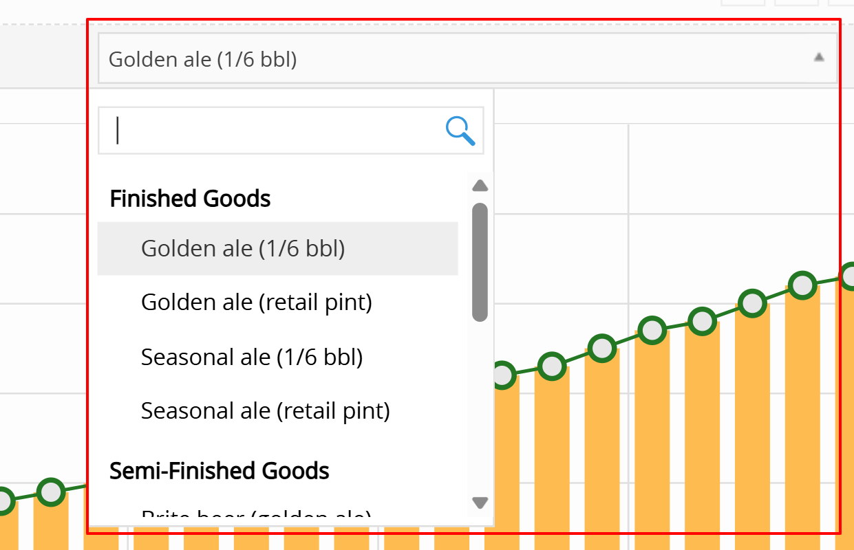 Select Your Product: Use the dropdown menu at the top right to focus on a specific item (e.g., Golden ale (1/6 bbl)).