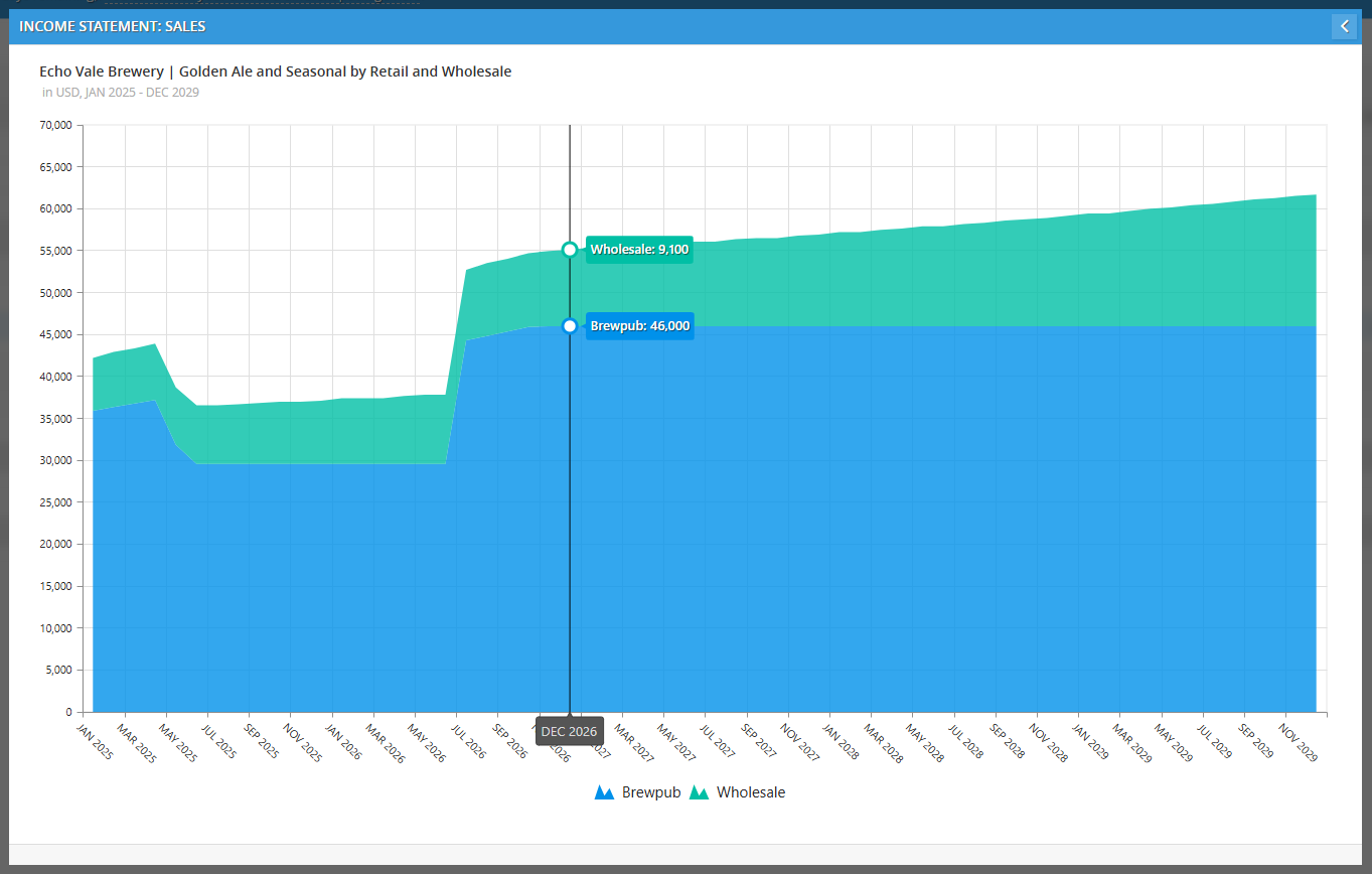 Sales: This is your "Top Line" revenue. In the expanded view, you can see exactly which channels (like Brewpub vs. Wholesale) or products (like Golden Ale) are bringing in the most money.
