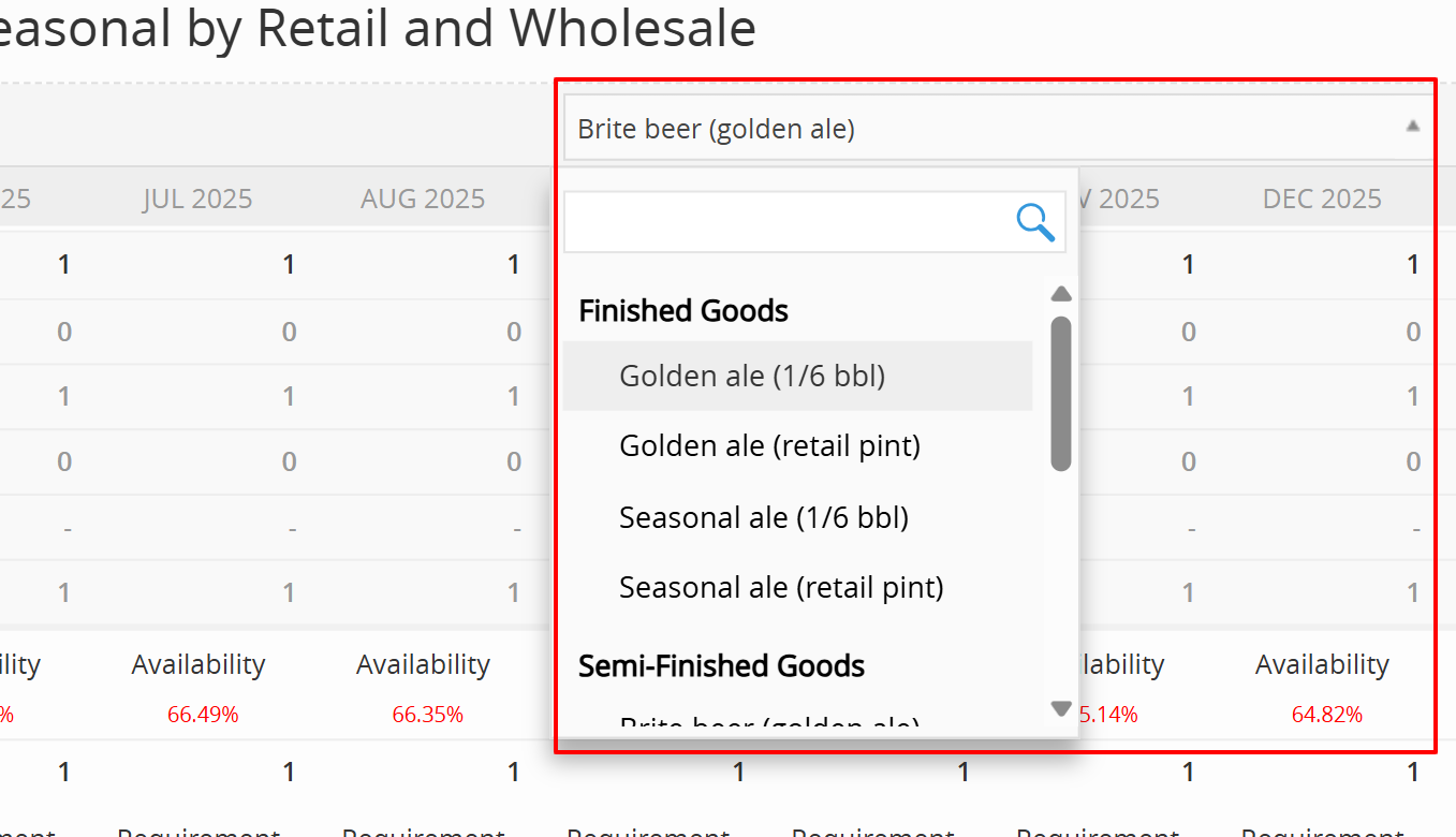 Select Your Product: Use the dropdown menu at the top right to filter by a specific product (e.g., Golden Ale 1/6 bbl).