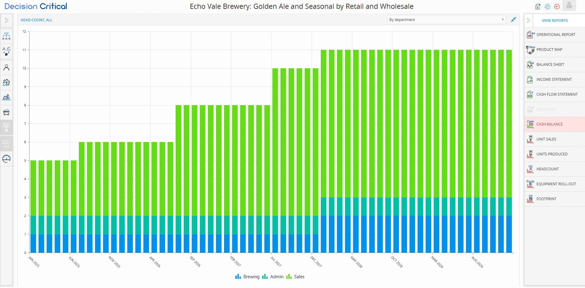 In Decision Critical, the Headcount report allows you to track the growth of your workforce over time. People are often your biggest expense and your most valuable asset; this report ensures that your hiring plan aligns with your production goals and financial capacity.