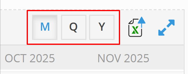 Toggle Your View: In the top right corner of the report, you can switch between M (Monthly), Q (Quarterly), and Y (Yearly) views to see trends over different time horizons.