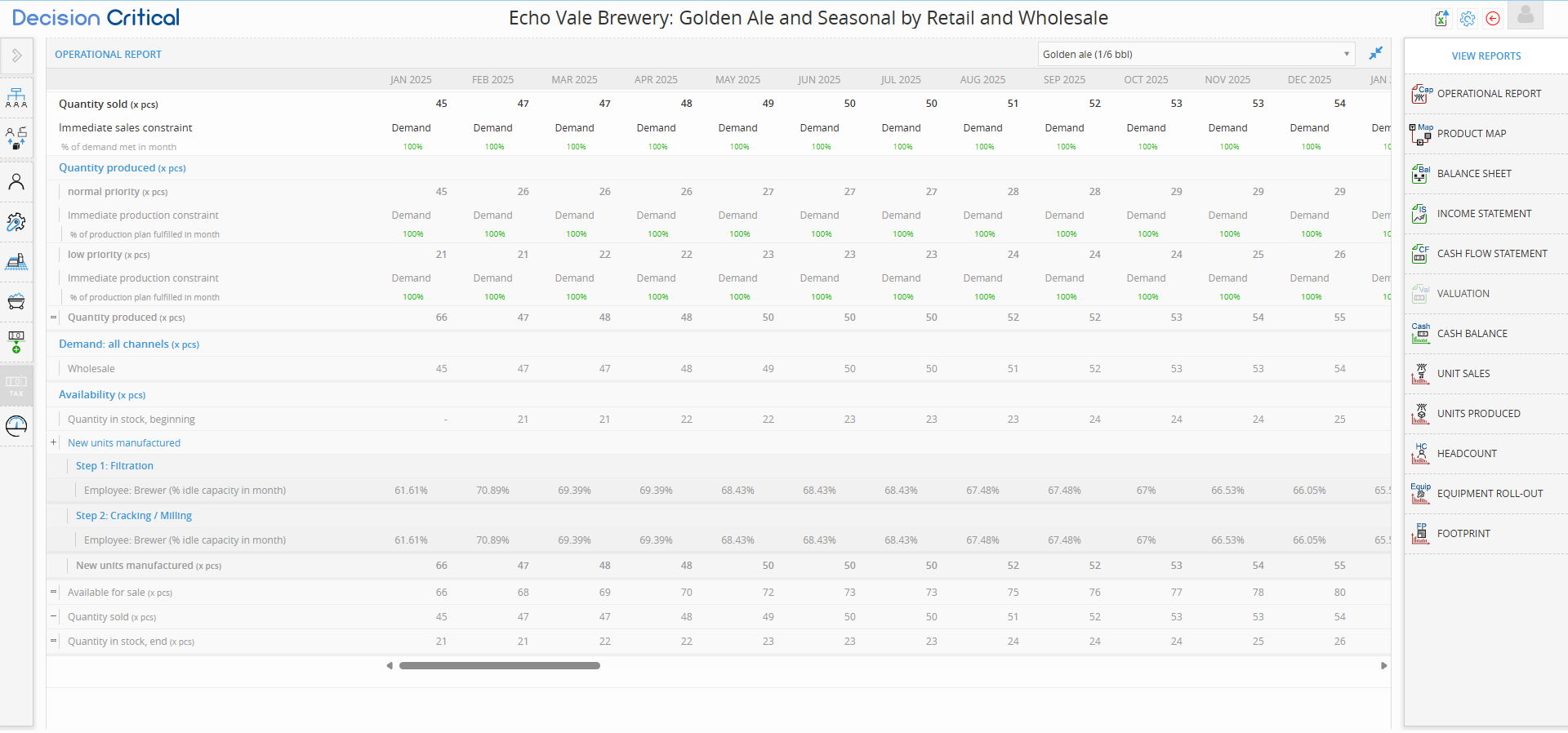 In Decision Critical, your financial reports act as the "scoreboard" for your business strategy. They translate your operational assumptions—like how many pints of beer you brew or how many sales reps you hire.